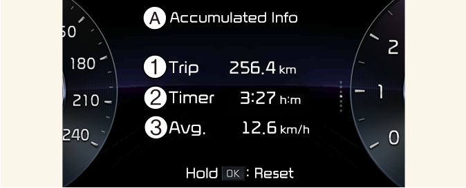 Si vous appuyez sur le bouton « OK » pendant plus de 1 seconde après l'affichage des Informations cumulées, les informations seront réinitialisées.