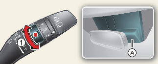 Le capteur de pluie (A) situé à l'extrémité supérieure de la vitre du pare-brise détecte l'intensité de la pluie et contrôle le cycle de balayage pendant l'intervalle approprié. Plus il pleut, plus l'essuie-glace fonctionne rapidement. Quand la pluie s'arrête, l'essuie-glace s'arrête.