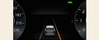 Quand le système d'assistance au maintien de la voie est activé, lorsque des marquages de voie (ou des bords de route) sont détectés, les lignes de voie vertes sur le tableau de bord peuvent apparaître.