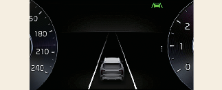 Lorsque le marquage des voies (ou des bords de route) est détecté, les lignes de voie sur le combiné passent du gris au blanc et le témoin lumineux (