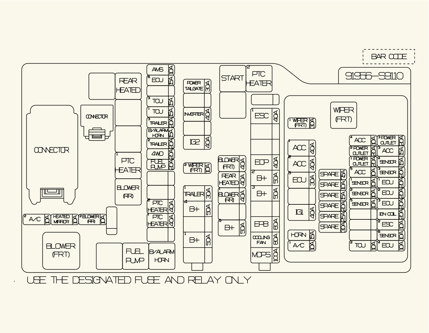 Bloc de jonction ICU (Fusible - SERRURE DE PORTE, COMMUTATEUR DE FREIN, VERROUILLAGE POUR ENFANTS, SIÈGE DROIT (DROIT), TOIT OUVRANT 2), IBU, IAU |