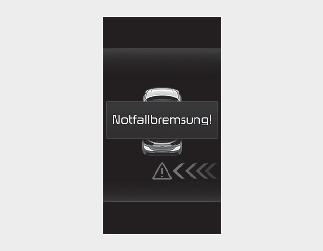 Wenn das Fahrzeug aufgrund einer Notbremsung angehalten wurde, erscheint die Warnmeldung „Drive carefully“ („Vorsichtig fahren“) auf dem Kombiinstrument.