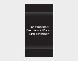 Treten Sie das Kupplungspedal vollständig durch und bringen Sie den Schalthebel in die Neutralstellung. Treten Sie das Kupplungspedal und das Bremspedal, während Sie den Start-/Stopp-Knopf in die START-Position bringen. Wenn der Status in ACC geändert wird, wird er auf dem Kombiinstrument wie im folgenden Pop-up angezeigt.