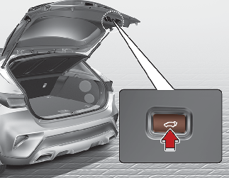 Stiskněte tlačítko pro otevření elektricky ovládaných pátých dveří po dobu přibližně jedné sekundy.
