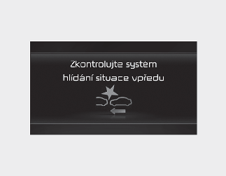 Pokud asistent pro předcházení čelnímu nárazu nepracuje správně, zobrazí se (a po určité době zmizí) varovná zpráva „Check