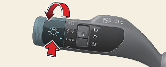 Si empuja el interruptor de las luces hacia el tablero de instrumentos, se enciende la luz de carretera y se libera la asistencia de luces de carretera.
