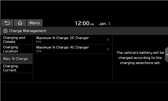 Válassza az [EV → Töltéskezelés] lehetőséget a kijelzőn.