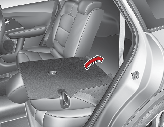 Ha szeretné használni a hátsó ülést, emelje meg, majd húzza a háttámlát hátrafelé a háttámlát megemelve. Határozottan húzza a helyére a háttámlát, amíg kattanó hangot nem hall. Győződjön meg a háttámla megfelelő rögzítettségéről.