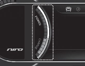 CHARGE (TÖLTÉS): az akkumulátor töltési állapotát mutatja a regeneratív fékekkel való töltés közben (fékezés vagy lejtőn való vezetés). A kijelző annál alacsonyabb értéket mutat, minél jobban feltöltődik az akkumulátor.