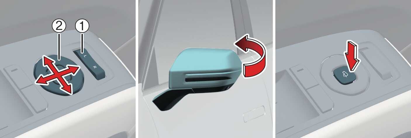 Käytä peilin säädön ohjausta (2) valitun peilin siirtämiseksi.