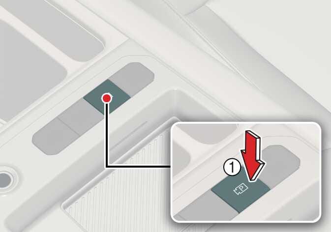 Voit kytkeä takanäkymän näytön päälle tai pois painamalla pysäköinti/näkymä-painiketta (1).