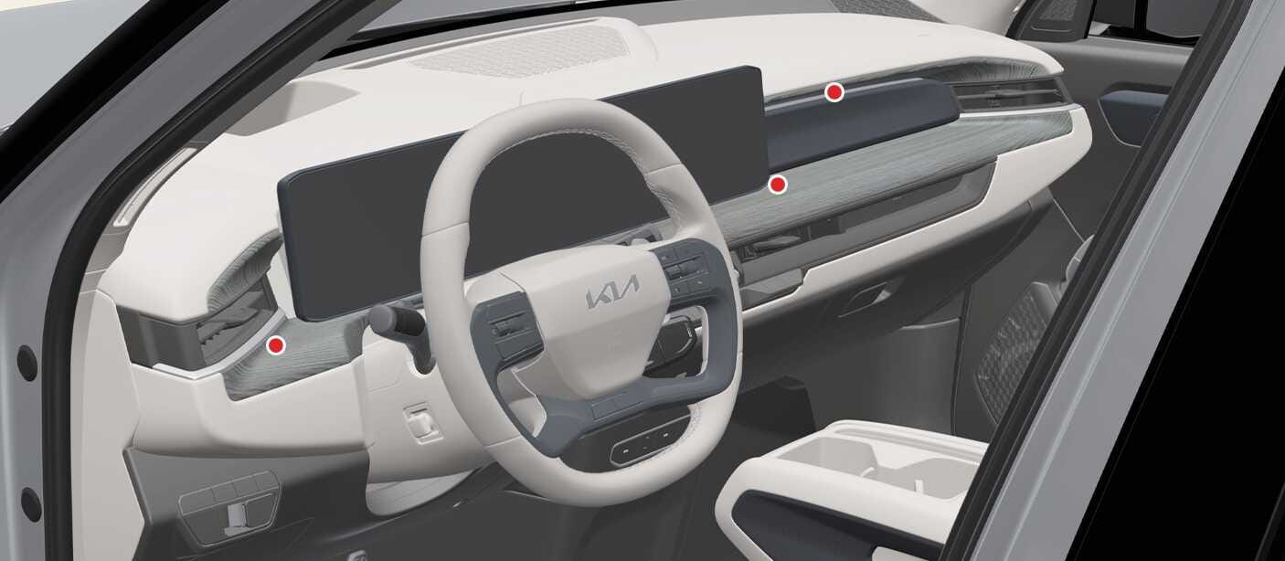 Taustavalot valaisevat kojelautaa edessä, etuovia ja keskikonsolin ylä- ja alaosaa.