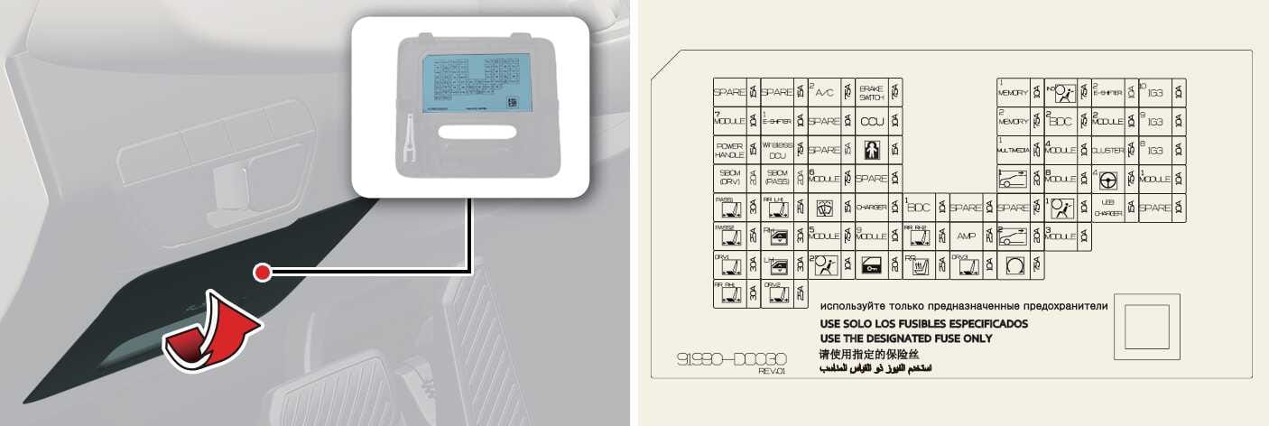 Datalinkkiyhteys, sähköinen kromaattinen peili, E-CALL-yksikkö, ADP, audio/video- ja navigoinnin pääyksikkö, kojelaudan kytkin, ajovalot V/O, AMP (vahvistin), älypuhelimen langaton laturi, kuljettajan/matkustajan sähkötoimisen istuimen moduuli, etuistuimen tuuletuksen ohjausmoduuli, etuistuimen lämmittimen ohjaus takaistuimen lämmittimen ohjausmoduuli, mittariston lattiakytkin, automaattisen ajovalojen korkeussäädön moduuli, IFS (älykäs etuvalojärjestelmä) -moduuli |