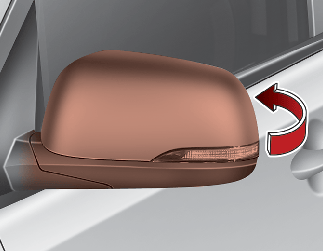 Taita ulkopuolinen taustapeili tarttumalla peilin koteloon ja kääntämällä sitä sitten sisäänpäin auton takaosaa kohti.