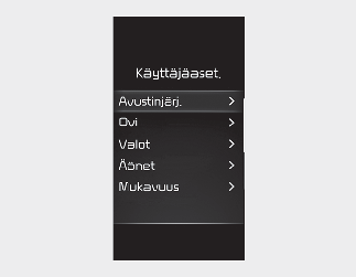 Oman turvallisuutesi takia muuta käyttäjäasetuksia vasta pysäköityäsi auton, kytkettyäsi seisontajarrun ja siirrettyäsi vaihteen P-asentoon (pysäköinti).