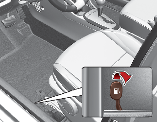 Polttoaineen täyttöluukku on avattava auton sisältä, vetämällä polttoaineen täyttöluukun avausvipu ylös, joka sijaitsee kuljettajan istuimen etuosan alueella.