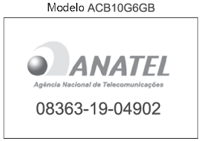 “Este equipamento não tem direito à proteção contra interferência prejudicial e não pode causar interferência em sistemas devidamente autorizados.”Para maiores informações, consulte o site da ANATEL www.anatel.gov.br