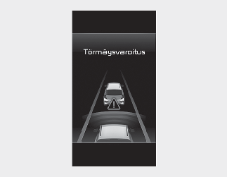 Järjestelmä varoittaa kuljettajaa hätäjarrutuksen avustamisesta näyttämällä kojelaudassa varoitusviestin "Emergency Braking" (Hätäjarrutus) ja soittamalla varoitusäänen.