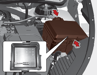 Kanisterin sulkuventtiili, Pyöräanturi oikeanpuoleinen kahva, Happianturi Ylös/Alas [(bensiini) 1.0 MPI, 1.2 MPI] Jäähdytysnesteen sulkuventtiili(M/T) [Smartstream G1.0, G1.2] ECM(Moottorin ohjausmoduuli)/PCM(Voimansiirron ohjausmoduuli) Huuhteluohjauksen magneettiventtiili, Vaihteleva ilmanoton solenoidi, Kierrätysventtiili, Öljyn ohjausventtiili IN/EX Ilmastointilaitteen rele, Jäähdytyspuhaltimen rele, Vaihteleva öljypumppu |