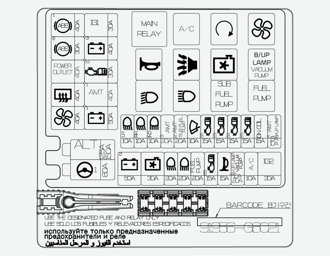 ECM (moottorin ohjausmoduuli)/PCM (voimansiirron ohjausmoduuli) [(bensiini) 1.0 MPI, 1.2 MPI] ilmastointilaitteen kompressorin rele, jäähdytyspuhaltimen rele, öljyn ohjausventtiili IN/EX(M/T), huuhteluohjauksen magneettiventtiili (M/T) jäähdytysnesteen sulkuventtiili(A/T) |