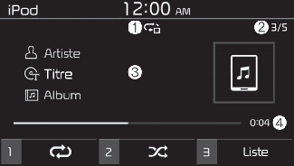 Accueil > Système d’infodivertissement > Lecteur de média > Utilisation du mode iPod