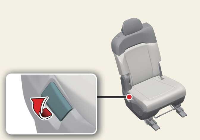 Τραβήξτε τον μοχλό ρύθμισης της γωνίας του καθίσματος της 2ης σειράς για να διπλώσετε εντελώς την πλάτη του καθίσματος προς τα εμπρός.