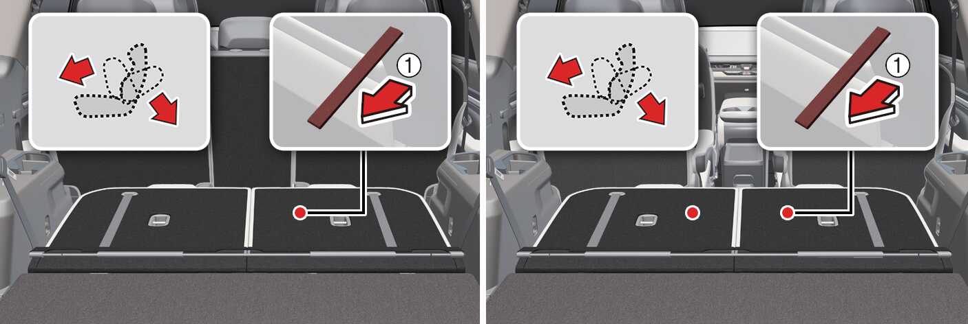 Μετακινήστε προς τα εμπρός τα καθίσματα της 2ης σειράς τραβώντας τους ιμάντες διπλώματος των καθισμάτων (1).
