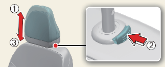 لرفع مسند الرأس، اسحبه للوضع المطلوب (1). لخفض مسند الرأس، ادفع مع الاستمرار زر التحرير (2) بدعامة مسند الرأس، ثم اخفض مسند الرأس للوضع المطلوب (3).