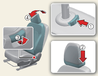 إذا أملت ظهر المقعد نحو الأمام أثناء رفع مسند الرأس ووسادة المقعد، فقد يلامس مسند الرأس حاجب الشمس أو أجزاء أخرى بالسيارة.
