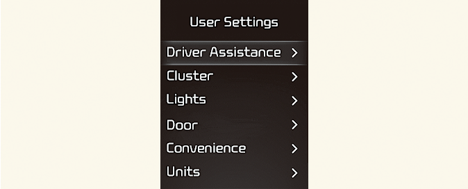 قم بتغيير User Settings (إعدادات المستخدم) بعد ركن السيارة وتعشيق فرامل الانتظار وتحريك ذراع النقل إلى وضع P (الركن)، وذلك لسلامتك.