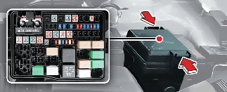 بعد التحقق من لوحة المصاهر في حجرة المحرك، ركّب غطاء لوحة المصهر بإحكام من خلال صوت النقر المسموع.