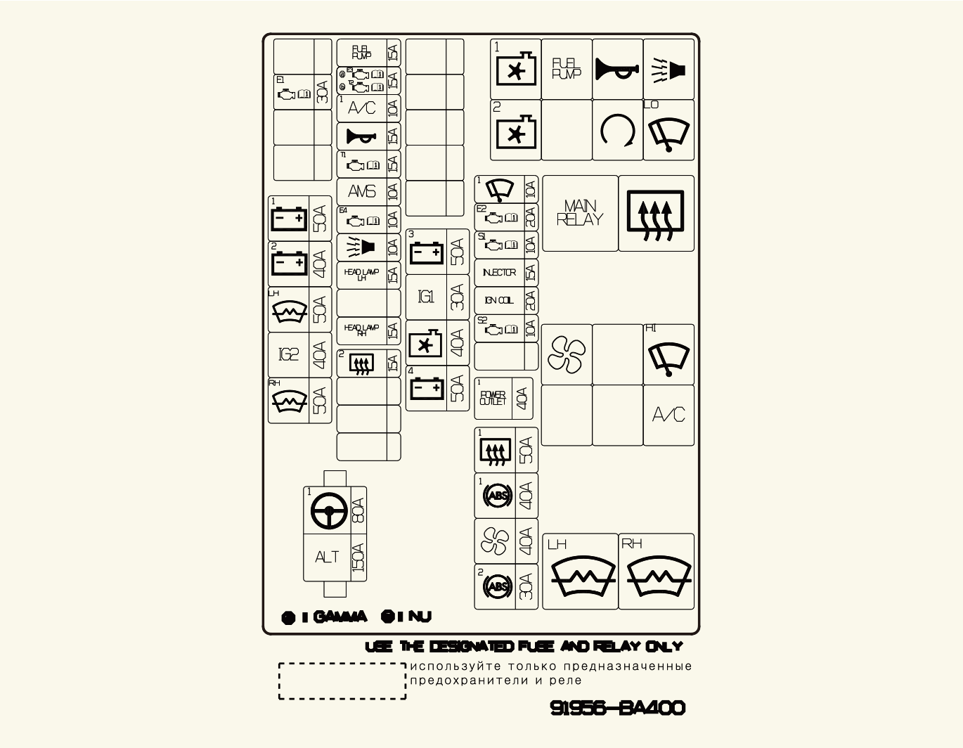 يمكنك العثور داخل أغطية لوحة المصاهر/المرحلات الكهربائية على ملصق مختص بتوضيح اسم كل مصهر/مُرحّل كهربائي وسعته.