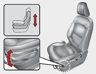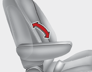 좌석에 앉은 상태에서 등을 앞으로 약간 숙이고, 좌석 바깥쪽에 위치한 좌석 각도 조 절 레버를 위로 당기십시오.
