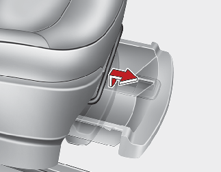 동승석 하단부에 서랍식으로 수납함이 설치되 어 있으며, 사물함 손잡이를 잡아 당겨 빼내십 시오. 소량의 가벼운 물건을 보관할 때 사용하 십시오.