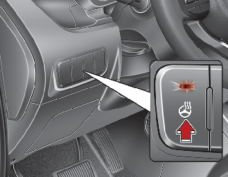 시동 「ON」 또는 시동 상태에서 스티어링 휠 히터 버튼을 누르면 표시등이 켜지고 핸들이 따뜻하게 됩니다.