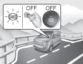경고등이 꺼지지 않는 경우 또는 주행 후 다시 경고등이 켜지는 경우에는 ABS 장치의 고장이므로 자사 직영 서비스센터 또는 서비스협력사에서 점검 및 정비를 받으십시오.