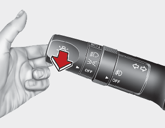 스위치를 계기판 방향 으로 밀어 놓는다. 또는 운전자 방향으로 당기고 있는다. (계기판에 상향표시등 ( |