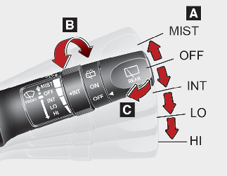 C : 와셔액 분출 및 와이퍼 일시 작동 (사양 적용 시)