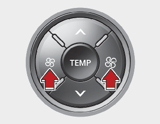 오른쪽을 누르면 풍량이 많아지고, 왼쪽을 누르면 풍량이 적어집니다. 표시창에 풍량의 정도가 표시됩니다.