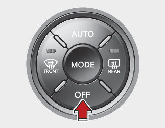 작동 정지 버튼을 누르면 바람 방향 선택과 내/외 공기 선택 기능(단, 외기 유입 상태로 전환됨)은 조절 가능하나 그외의 작동은 중지되며 해당 표시등이 꺼집니다.