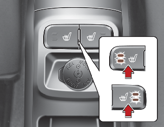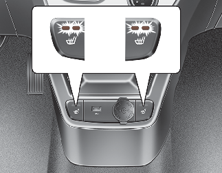 시동 상태에서 해당 좌석 히터 버튼을 누르면 강약조절 표시등이 켜져 사용 중임을 나타내고 해당 좌석이 따뜻하게 됩니다.