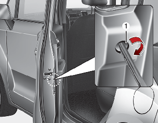 어린이 보호용 잠금 장치를 열림의 위치로 하기 전까지는 도어가 잠금해제된 상태라도 차 안의 도어 핸들로 뒷도어를 열 수 없습니다.