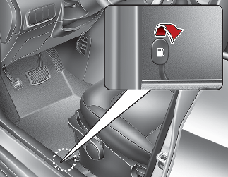 연료주입구 열림 레버를 당기면 연료주입구 커버가 열립니다.
