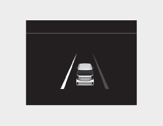 차로 이탈방지 보조가 켜진 후 차량 속도 60km/h 이상에서 기능이 차로를 인식하면 인식된 차선 방향의 표시 부분 색상이 회색에서 흰색으로 바뀝니다. 이때, 차량이 차로를 이탈 하면 다음과 같이 기능이 경고를 합니다.