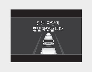 정차 중에 전방 차량이 출발하면 알림음과 함께 계기판에 문구가 표시됩니다.