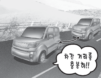 차간 거리를 충분히 확보하고 스티어링 휠을 천천히 조작하십시오.