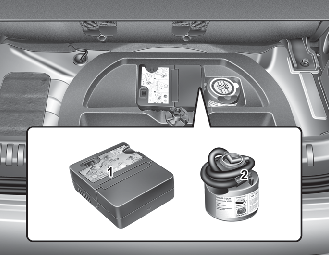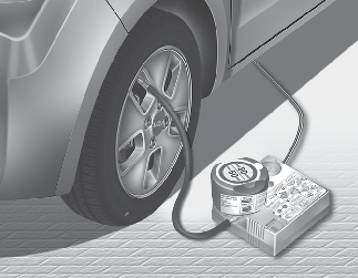 타이어 펑크시 타이어 임시 수리 장치를 사용하십시오.