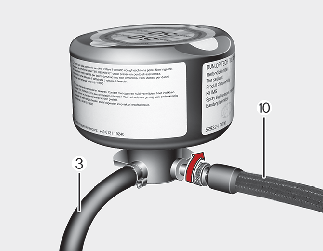 임시 수리 장치에 연결된 「컴프레서 연결 호스」(10)를 실런트 용기에 연결하여 고정하십시오.