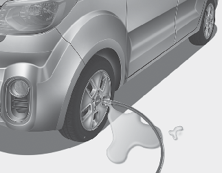 주의실런트(봉합제)를 사용하여 펑크난 타이어를 수리 했을 시, 타이어 공기압 감지 센서와 휠에 묻은 실런트(봉합제)를 제거해야 합니다. 자사 직영 서비스센터 또는 서비스협력사에서 점검 및 정비를 받으십시오.