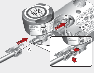 실런트 주입 호스를 실런트 용기 연결부(A)에 연결하십시오.